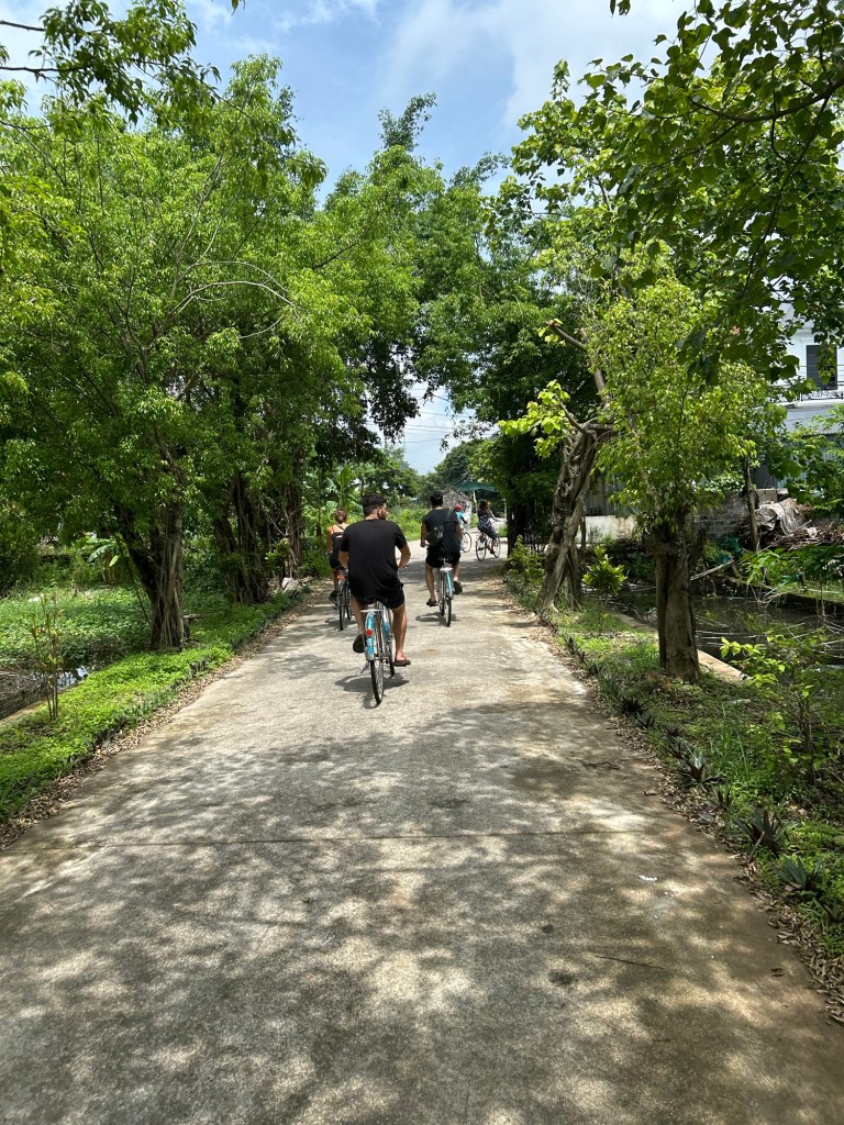 Whoever thought riding a single sprocket, non electric bike with dodgy wheels and brakes in 35 degree temps with humidity at 360% is a madman. I need to reconsider my life choices. Karen wisely chose to wander around the village while laughing at me.