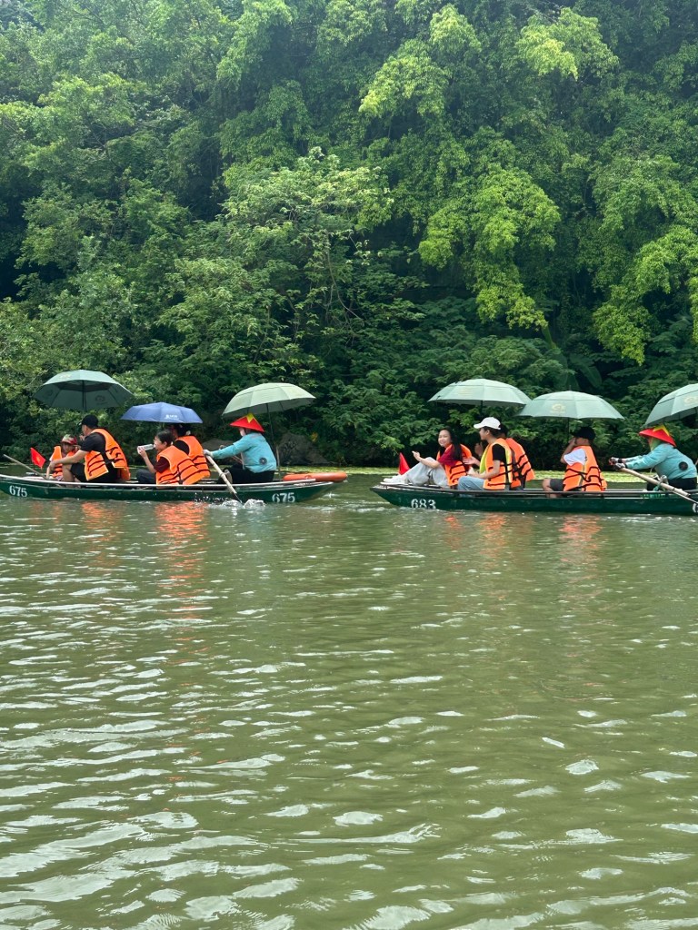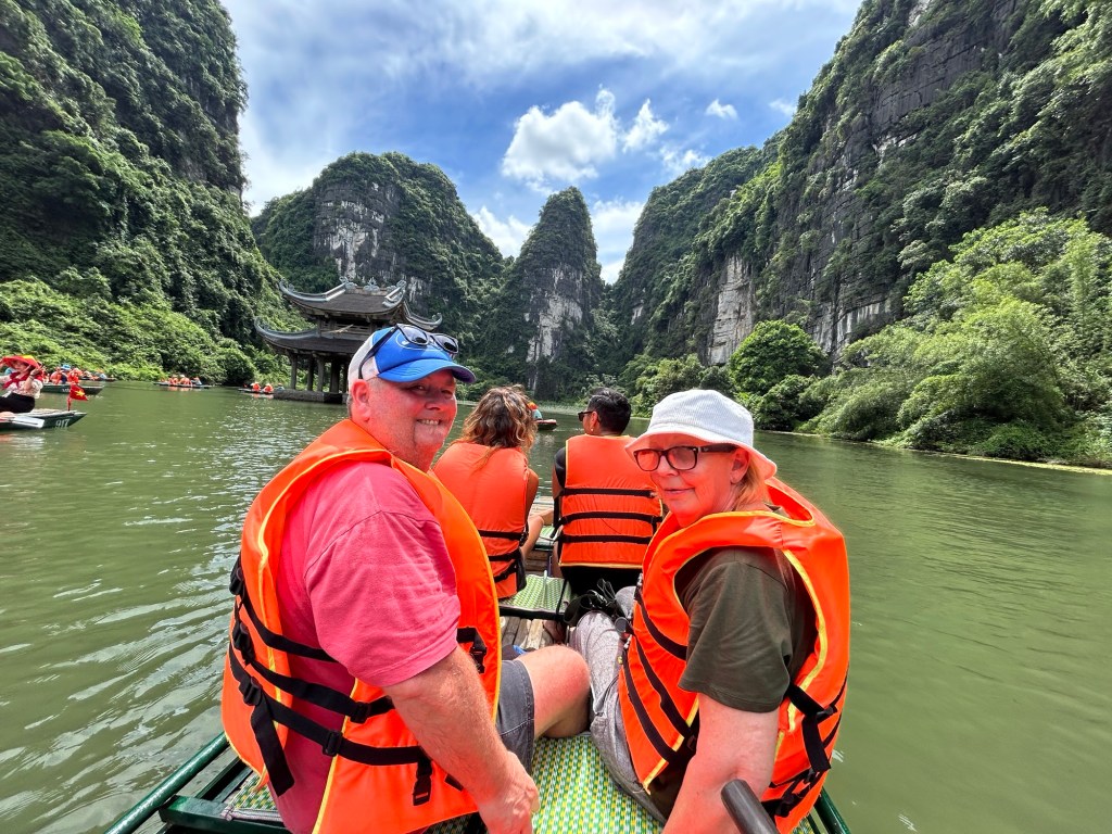 We went a little further into the province and found ourselves at Trang An a majestic inland waterway where we were rowed around for a couple of hours in a sanpan by a lovely local lady.
