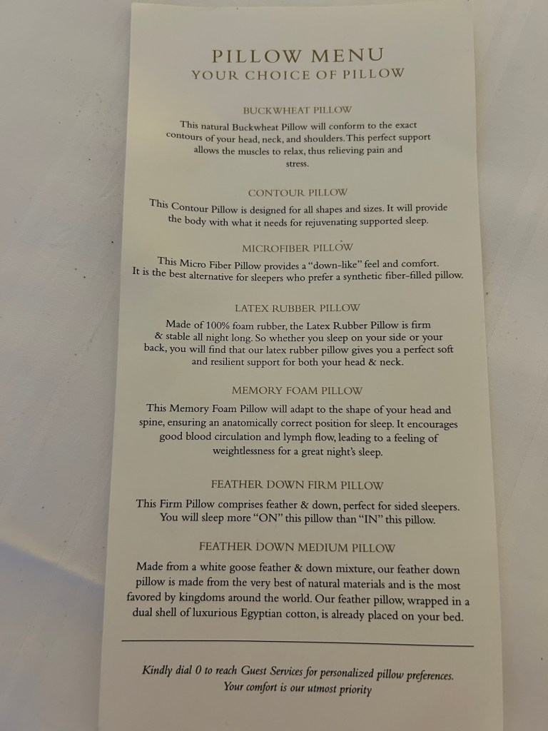 Back to the room to find a “Pillow Menu”