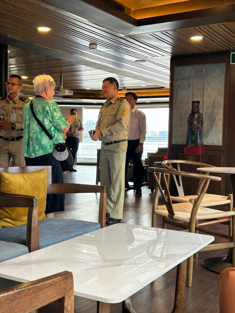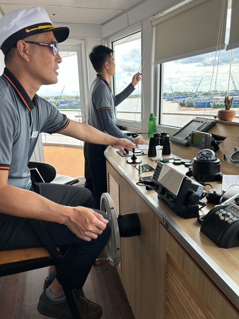 I was watching the action from the deck and was invited into the Bridge with the ship Captain and first officer as they circled waiting g for the Cambodian team to join us.
